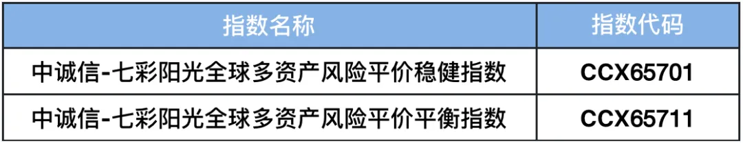 表1 中诚信-七彩阳光全球多资产风险平价指数系列名称