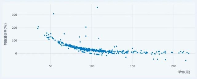 通过划分平价区间的方式使得在同一区间内的转债可比。这种方式实际是实现了一种模糊的正确。理论上说,平价区间划分得越细,区间内的样本可比性就越强,但是这面临一个现实问题就是区间内的样本数量较少甚至出现断层。而平价区间划分得越大,区间内样本的可比性就越差。因此在同一个平价区间内比较溢价率其实面临着样本区间划分范围确定的难题。此外,该方法仅通过平价区间进行划分而忽略了转债的绝对价位的影响。
