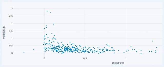 转股溢价率反映转债价格相对平价的溢价,是从股性的角度出发刻画转债的估值。转股溢价率和转债价格的关系存在较为明显的负相关性,因此并不能简单得通过转股溢价率辨别转债的股、债性。