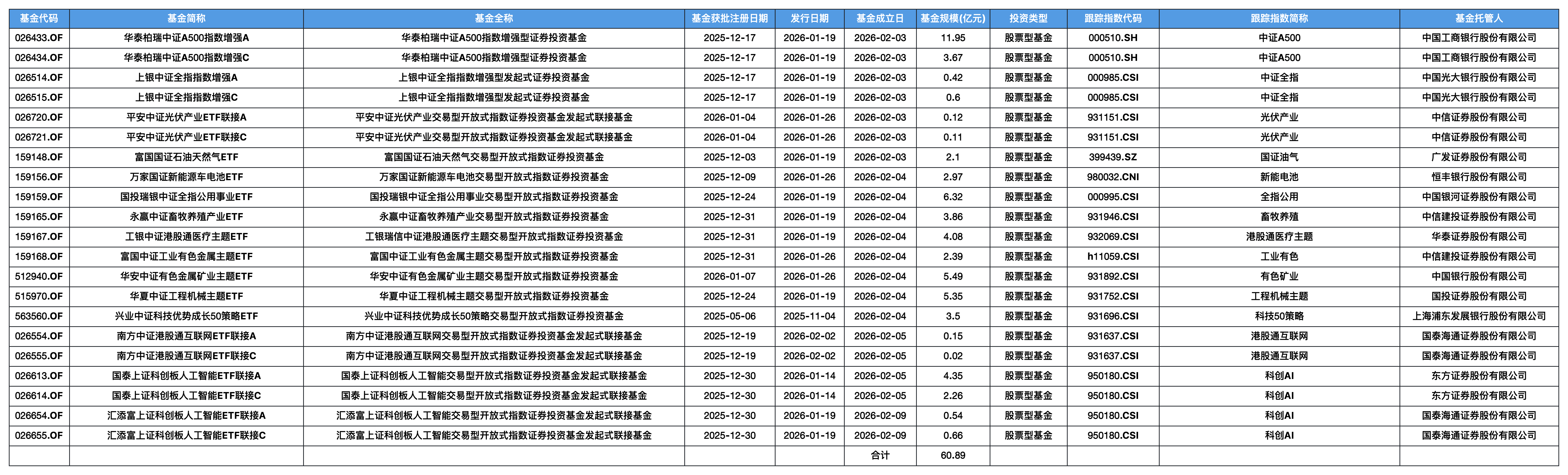 表6 2025年以来成立的指数基金发行规模